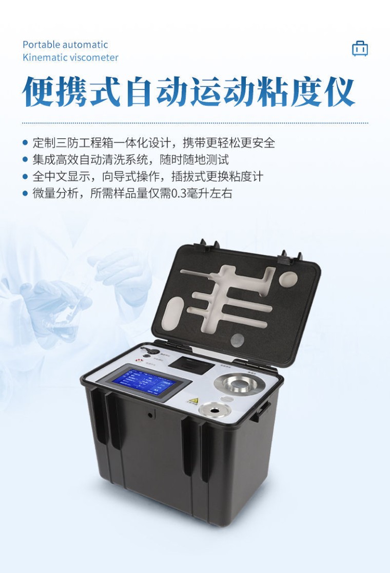 一、仪器简介 全自动运动粘度仪是用于精确测量液体流动特性的智能化仪器,具备自动温控、数字计算等功能。相比于传统粘度仪,本仪器采用红外检测原理,配合气泵、电磁阀等部件,可24小时无人值守运行,自动完成样品测试,极大提高了实验室的工作效率,消除了人为操作误差,温度和流程控制极其精确,结果可靠。 二、检测原理 通过精确测量一定体积的液体在恒定压力和温度下,流经一根精密毛细管所需的时间。流动时间与液体的运动粘度成正比η=k*t*ρ,其中k为仪器常数,t为时间,ρ为密度。 三、适用标准 GB/T265《石油产品运动粘度测定法和动力粘度计算法》 四、应用范围 全自动运动粘度仪广泛应用于需要对液体粘度进行质量控制和研究开发的行业: 石油化工:润滑油、燃油、沥青、原油等的粘度等级评定。 化工与高分子:聚合物溶液、树脂、胶粘剂的特性和粘均分子量测定。 食品与饮料:食用油、巧克力、蜂蜜、果汁、酱料等的质构控制。 制药与化妆品:药品糖浆、乳剂、凝胶、面霜、洗发水等物质的流变性质量控制。 五、仪器特点 1、Android 10操作系统,具有WiFi、网线多方式上传功能,快速批量上传数据; 2、10.1寸高清安卓触摸屏,清晰高效的UI交互界面,增强操作和视觉体验; 3、采用进口高性能光纤与放大器,检测精准高效; 4、采用德国进口温度传感器,具备多种校准方式,温度的采集与控制非常精准; 5、双通道测试,可分别设置参数,多种样品同时检测时,可节省时间; 6、★光纤传感器阈值参数、抽提吸引力可系统内设置,无需外部调节; 7、★具备数据优化功能,可手动剔除因在测试环节内出现意外造成的错误结果,避免全部测试结果报废; 8、具备自动清洗,自动烘干,自动排空等多种自动化功能; 9、具备预配置功能,可预置多种针对不同粘度样品的测试参数; 10、内置新一代高速热敏打印机。 六、技术参数 1、温度范围:室温~150℃ 2、温度传感器:进口不锈钢PT100温度探头 3、温度测量精度:±0.01℃ 4、恒温控制精度:±0.1℃(≤100℃),±0.2℃(≤150℃) 5、★时间分辨率:≤0.0005s 6、★加热功率:1600W 7、测量范围:0~30000mm2/s 8、粘度分辨率:0.00001mm2/s, 9、实验孔:2路 10、液位检测方式:光纤红外检测 11、温度校准:1~5点校准 12、数据内存容量:最大10万条,可查询,可USB导出 13、运动粘度重复性误差:<0.4% 14、运动粘度检测误差:<0.4% 15、显示:10.1寸彩色触摸屏 16、环境温度:(5 ~ 45)℃ 17、环境湿度:≤85% RH(无冷凝) 18、电源输入:220V AC±10% 50HZ±10% 19、额定功耗:1700W 20、尺寸:350mm×488mm×636mm 21、重量:32kg