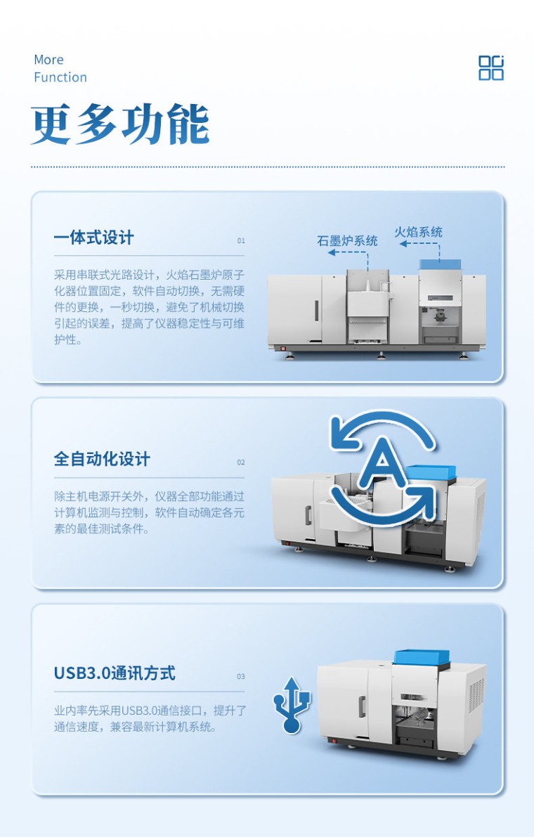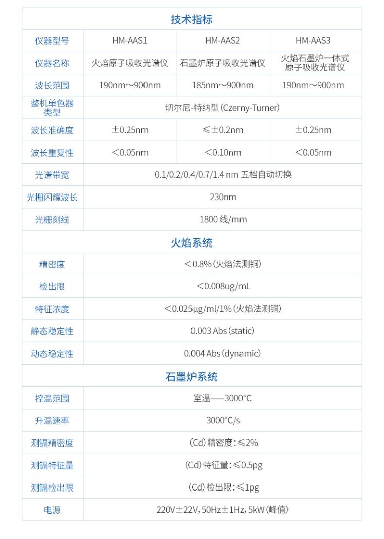 仪器介绍: 火焰原子吸收光谱仪是由我司集多年研发经验开发的全自动智能化火焰原子吸收仪器,用于测定各种物质中的常量、微量、痕量金属元素和半金属元素的含量。该机采用PC机和中文界面操作软件,使仪器操作简便,直观易懂。应用先进的电子电路系统和USB2.0通讯控制,实现了仪器的波长扫描、寻峰定位、光谱通带宽度、回转元素灯架、原子化器高度和位置、燃气流量、灯电流和光电倍增管负高压等功能的自动调节。仪器存储多种分析方法的所有测定元素的分析操作参考条件,用户还可根据需要修改操作条件,并可把操作条件和工作曲线及测试结果存盘,可重新调出使用和处理。 性能特点 :(主机) 1、全反射消色差光学系统 采用凸透镜作为仪器的聚焦光学元件,有效解决了不同元素焦点不同的色差问题,提高了光学效率。 2、C-T 型单色器 采用 1800 L/mm、闪耀波长 230nm 光栅作为分光系统。 3、八元素灯灯塔 八灯座设计,八路独立灯电源,一灯工作,可以实现七灯预热,节省了换灯和预热时间。 4、全自动化设计 除主机电源开关外,仪器全部功能均由控制。 5、USB3.0 通讯方式 业内率先采用 USB3.0 通信接口,提升了通信速度,兼容**计算机系统。 6、背景校正系统 具备氘灯与自吸收两种背景校正模式,背景信号 1A 时,扣背景能力 40 倍以上。 火焰系统 : 1、纯钛雾化室,纯钛燃烧头 有效防止腐蚀,使用周期更长。 2、高效玻璃雾化器 采用专用带撞击球的高效玻璃雾化器,雾化效率更高,维护方便。 3、高精度质量流量控制器实现乙炔流量调节 质量流量控制器精确控制乙炔流量,精度可达 1ml/min,并对流量进行动态监测。 4、更多的安全保护措施,仪器更加安全可靠 1) 乙炔泄露保护 2) 乙炔压力监视 3) 空气压力监视 4) 燃烧头状态监视 5) 火焰状态监视 6)水封状态监视 技术指标 : 单色器类型:切尔尼-特纳型(Czerny-Turner) 波长范围:190nm~900nm 波长准确度:±0.25nm 波长重复性:< 0.05nm 光谱带宽:0.1/0.2/0.4/0.7/1.4 nm 五档自动切换 精密度:< 0.8% 检出限:< 0.008ug/mL 特征浓度:< 0.025μg/ml/1% 静态稳定性: 0.003 Abs(static) 动态稳定性: 0.004 Abs(dynamic)