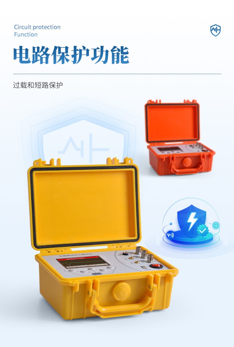 一、简介 电缆故障测定仪是用于检测电力电缆、通信电缆等故障的综合性设备,可定位开路、短路、高阻故障等,并支持路径探测。通过低压脉冲法确定故障大致位置,配合声磁同步技术准确定点。 二、应用场景 适用于35kV及以下电压等级电缆,涵盖电力、通信、铁路信号等领域。 三、技术参数 电缆故障测定仪: 1、显示:480*320分辨率,3.5英寸 2、测试范围:8Km 3、测试盲区:5米 4、测试分辨率:0.5米 5、脉冲宽度:30V脉冲,100ns-2us自动调节 6、测试方式:自动测试、手动分析,2种方式组合 7、阻抗平衡自动调节 8、增益调节:自动和手动相结合 9、功能:漏电定位、路径寻径、深度计算 10、漏电故障:漏电绝缘电阻范围0-0.5MΩ 11、测试误差:1米 12、电缆深度:3米 13、路径精度:0.2米 14、接口:USB-A(固件升级);DC5.5/2.5接口;BNC TDR测试口;BNC全频检测座;BNC抗干扰检测座;2*PJ3.5mm音频座 15、锂电池:11.1V 2000mAH 16、充电器:DC 12V 2A 17、工作环境:-15~50℃;95%RH;防水:IP67 18、冲击强度:具有较高的抗冲击强度,能够在恶劣环境下保持稳定工作。 19、主机体积: 220*1 60*90 (W*D*H, mm) 20、主机重量: 1.2kg 信号发生器: 1、显示:3.5TFT 320*480像素点 2、信号输出:512Hz/1KH频率可调、类型可选 3、输出幅值:16V-100V之间可调 4、输出方式:直连法 5、输出功率:10Wma* 6、万用表功能:绝缘电阻,电缆环阻,交流电压,直流电压 7、电路保护:过载和短路保护 8、发射钳线长:1.2米 9、接口:USB-A(固件升级);DC5.5/2.5接口;BNC测试口;BNC信号输出座;BNC环阻/绝缘检测座 10、锂电池:11.1V 5200mAH 11、充电:DC 12V 2A 12、工作环境:温度:-15~50℃;湿度:95%RH;防水:IP67 13、冲击强度:具有较高的抗冲击强度,能够在恶劣环境下保持稳定工作。 14、信号发生器体积:220*160*90 (W*D*H, mm) 15、主机重量:1.5kg