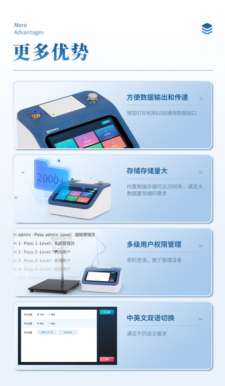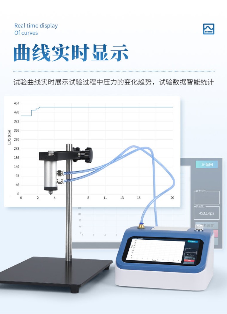 一、产品简介: 正压法密封仪,专业适用于各种热封、粘接工艺形成的软包装件、无菌包装件等各封边的封口强度、热封质量、以及整袋胀破压力、密封泄漏性能的量化测定;对软包装袋所使用材料的抗压强度、耐破强度等指标分析;各种塑料防盗瓶盖密封性能、瓶盖连接脱扣强度、材料的应力强度的量化测定;瓶体密封性、抗压性、耐破性等评估分析。通过正压法来进行测试,模拟实际使用环境下的密封强度、泄漏性能和耐压极限,为各行业的包装质量管控提供可靠的依据。 二、产品特点: 1. 7英寸触摸屏控制,一键式操作、直观操作界面,可远程升级与维护; 2、 采用SMC知名品牌进口元器件,正压设计原理,操作简单、性能稳定可靠; 3、 内置压力传感器,可精确测定试样内部压力; 4、 试验曲线实时展示试验过程中压力的变化趋势,试验数据智能统计; 5、 提供破裂测试、蠕变测试、蠕变至破裂测试试验模式; 6、 微型打印机和USB通用数据接口,方便数据输出和传递; 7、 内置数据存储可达2000条,满足大数据量存储的需求; 8、 多级用户权限管理,密码登录; 9、 符合中国GMP对数据可追溯性的要求,满足医药行业需要; 10、 中英文双语切换,满足不同语言要求; 三、执行标准(部分): ASTM F1140、ASTM F2054、YBB 00252005、YBB 00162002、ISO 11607-1、ISO 11607-2、GB/T 10440、GB 18454、GB/T 17876、BB/T 0025; 四、技术参数: