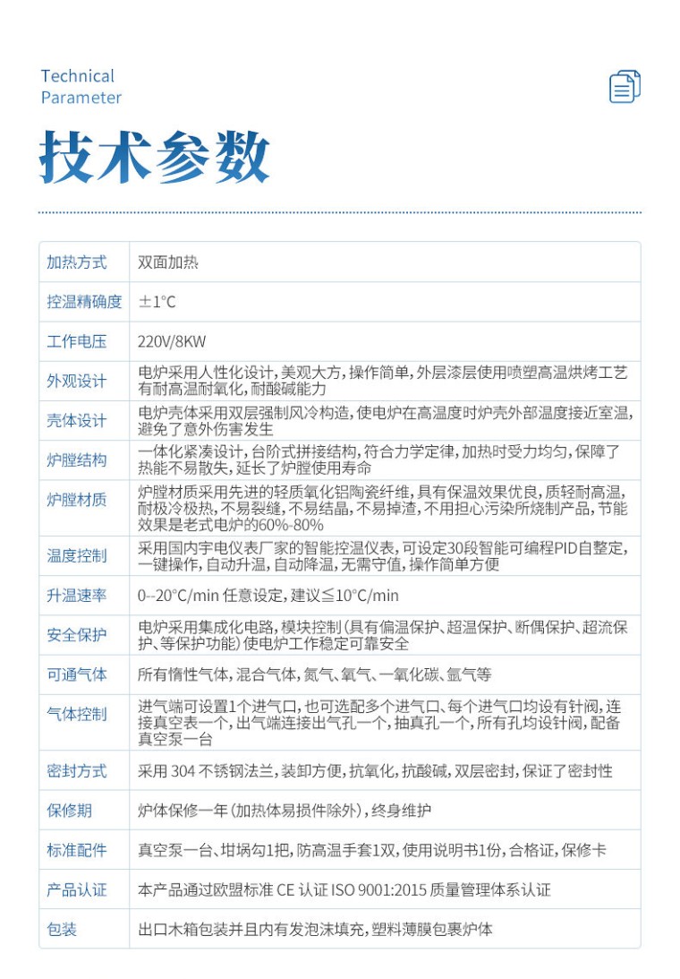 1、炉膛采用优质氧化铝纤维材料,保温性能好,耐用,拉伸强度高,无杂球,纯度高,节能效果明显;