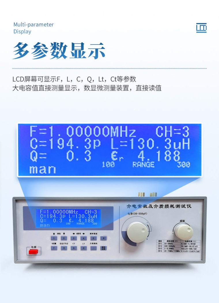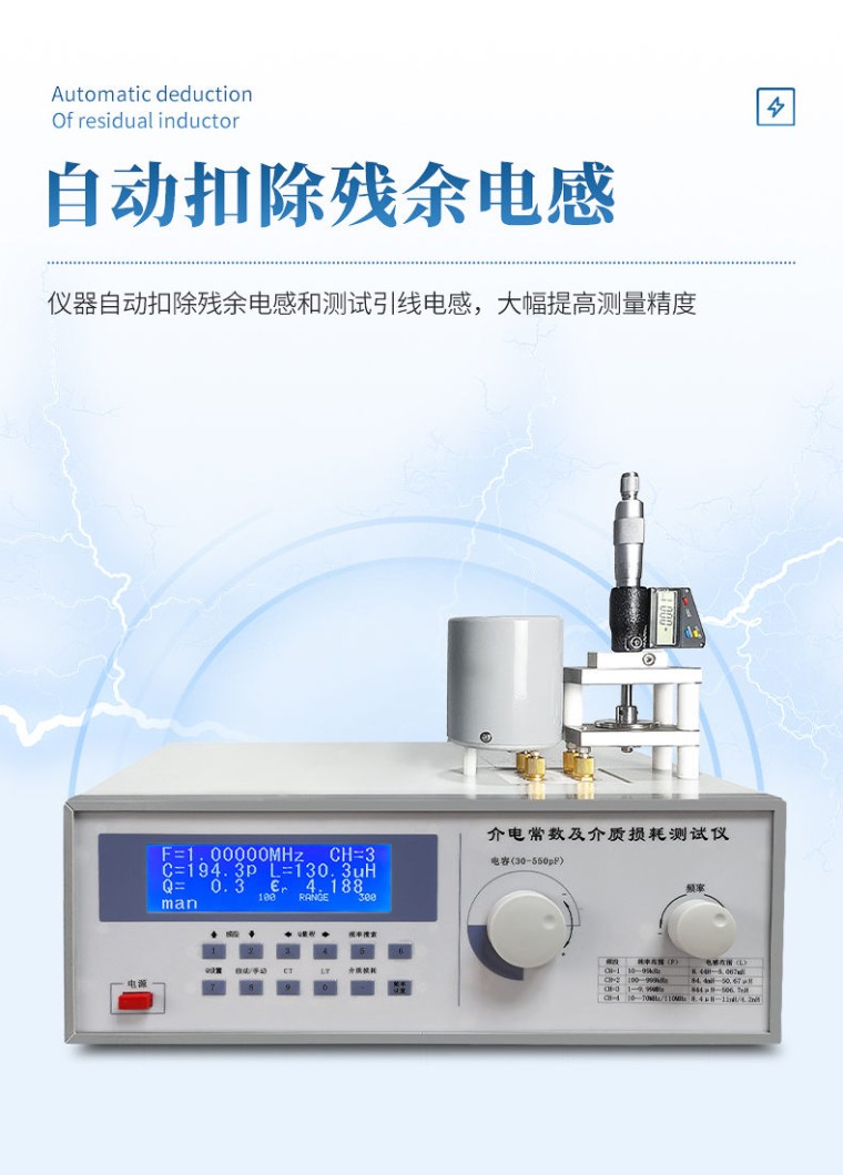 介质损耗和介电常数是各种金属氧化物,板材,瓷器(陶器),云母,玻璃,塑料等物质的一项重要的物理性质。通过测定可进一步了解影响介质损耗和介电常数的各种因素,为提高材料的性能提供依据。 仪器用途 该仪器用于科研机关、学校、工厂等单位对无机金属新材料性能的应用研究。 参考标准 u GB/T 1409-2006 测量电气绝缘材料在工频、音频、高频(包括米波波长存内)下电容率和介质损耗因数的推荐方法; u GB/T 1693-2007 硫化橡胶 介电常数和介质损耗角正切值的测定方法; u ASTM-D150-介电常数测试方法; u GB9622.9-88/SJT 11043-1996 电子玻璃高频介质损耗和介电常数的测试方法。 技术参数