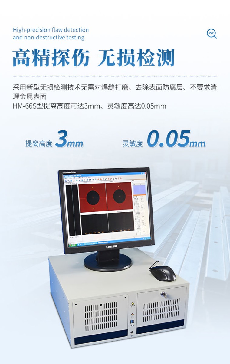 产品详情: 66S采用正交电磁场检测技术是一种新型的无损检测技术,用于检测金属构件的裂纹缺陷,焊接体表面及内部缺陷,该检测技术在无损检测中被广泛的应用。配备我公司独特的传感器,其提离信号小,灵敏度高,并不要求清理金属表面,解决了传统采用超声的检测工艺复杂的局限性,该方法快速、简便。可用于各种金属零部件和铁磁性焊缝表面裂纹检测及内孔面的裂纹检测;检测板的厚度变化及导体非导电性涂层或镀层的厚度变化;检测在役铜、钛、铝、锆等各种金属焊管焊件质量。该仪器特别适用于工业各类管材、棒材、金属焊板及轮船飞机焊接在役和役前检测。 产品优势: 1、检测精度高、速快 2、最大提离高度可达3mm 3、操作简单/快速掌握 4、检测具有高灵敏度:0.05mm(表面平整) 5、无需对焊缝打磨、去除表面防腐层、不要求清理金属表面 仪器性能参数: 1、检测通道:1~8 2、频率范围:50Hz~10MHz连续可调,手动随意输入数字 3、增益范围:0~99.0dB连续可调,步进:0.1dB 4、相位旋转:0~359°连续可调,步进:1deg 5、增益比:(X/Y)0.1~10.0 6、检测速度:>200M/min 7、可调探头驱动等级:1~8 8、可调探头匹配等级:0~3 9、非等幅、非对称相位报警区域设定 10、多中显示方式:阻抗、时基 11、数字滤波:0Hz~2KHz带通滤波,0~10多阶滤波 12、延时、实时硬件输出报警,支持串口、并口、USB输出控制 13、声光报警输出、PLC控制输出 14、具有延时、定长打标,精度0.01S/1MM 15、具有端头、端尾信号切除功能(可扩多段信号控制) 16、大量存储各种检测程序和检测数据 17、可涡流信号回放扩展功能,测量缺陷的幅值、相位、数字值 18、自动记录显示缺陷数及其位置 19、自动形成检测报告(包括检测数量、合格数和不合格数) 20、显示方式:实线、消隐、十字光标 21、消隐显示系数:1~400 22、中英文操作语言、在线帮助 23、直角坐标系与极坐标系背景选择 24、自动日历、时间显示 25、电源:220V(-20% ~ +20%) 功耗<10W 26、482*452*177mm(L*W*H)(台式工控机) 19寸显示器 27、多达8路报警信号输出,多为安全开关信号 28、自动平衡:1~100级实时反馈平衡 29、内、外时钟选择