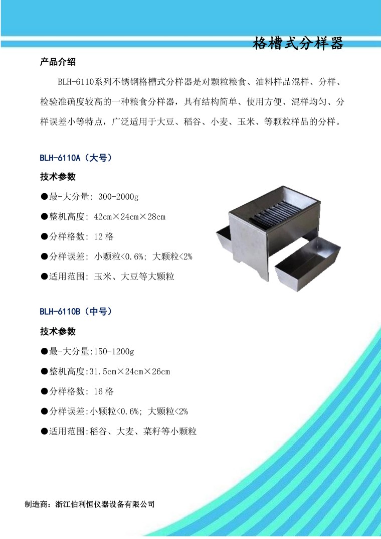 我对您的BLH-6110型不锈钢格槽式分样器产品感兴趣,请发具体的信息及报价,谢谢!