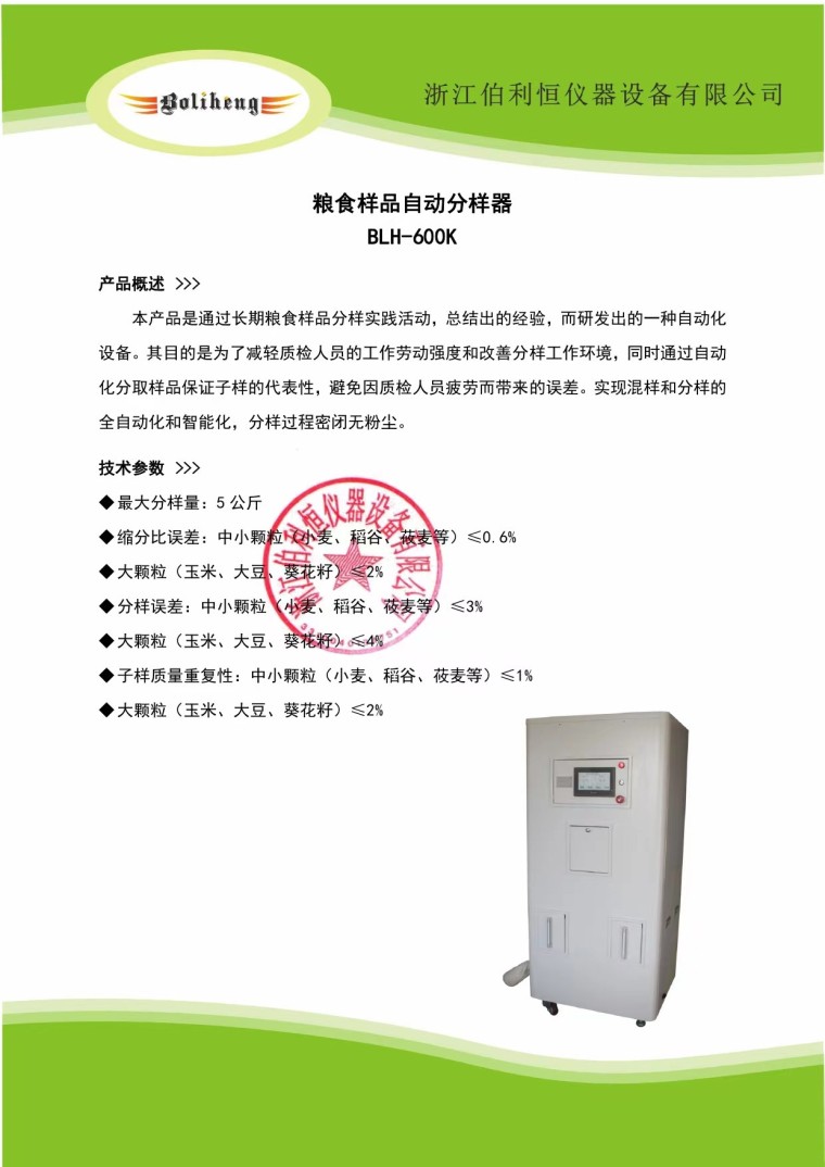 我对您的BLH-600K粮食样品全自动分样机产品感兴趣,请发具体的信息及报价,谢谢!