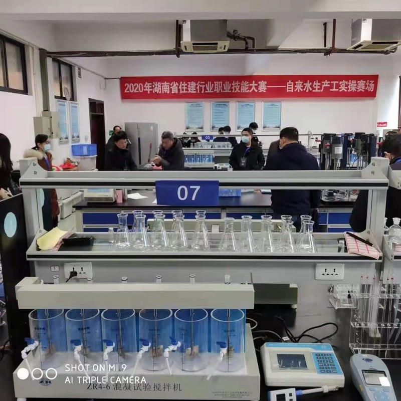 混凝试验搅拌器主要应用范围: 混凝试验搅拌机水处理专用试验仪器(不是分析仪器), 用于水处理过程的烧杯试验(Jar Tester), 烧杯试验是水处理的经典试验。 技术性能: 1、内存10组程序,每个程序可运行10段不同转速,每段运行时间0-99分99秒。 2、微电脑控制, 中文界面,大屏幕液晶显示,随意编写或修改程序。 3、独立运行、同步运行功能。自动测量水样温度。 4、自动计算速度梯度G值、GT值。自动加药。 搅拌头自动升降。 5、主机和控制器为两个独立部分,电缆连接, 便于维修、更换。 搅拌、加药和提升分别由三块集成电路板控制,更换维修非常方便。 6、搅拌头向后翻转,升降时间不超过4秒钟。同垂直升降方式比 较,具有升降时间短,噪音小的优点。 7、高精度步进电机,转速由电脑芯片数字信号控制,运行完全同步,平行试验数据吻合。 8、所有操作菜单提示, 工作时所有参数显示在液晶屏幕上。 9、独立运行:同时运行六组不同程序,大大减少实验次数,对比不同搅拌工艺对混凝的影响。 10、自动加药:达到设定转速后,自动同步往烧杯内加药,可以多次多品种自动加药。 11、自动提升:搅拌结束,搅拌头自动升离水面。 12、无机械传动装置、避免传统机械式搅拌机皮带和齿轮等传动部件频繁故障的缺陷。 13、搅拌机底座带灯箱、配蓝色背景,可以清楚观察矾花的形成、大小和沉降速度。 14、配有机玻璃圆形或方形烧杯、方杯概念与国际上通行的混凝试验方法保持一致。 技术参数:
