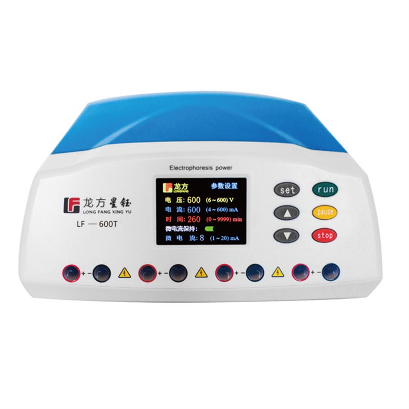 产品用途: 蛋白电泳、核酸电泳、转膜电泳、高通量垂直电泳 LF-600T电泳仪电源产品特点: 1、外壳为PC+ABS优质材料,流线型设计,美观耐用。 2、高清彩色液晶显示屏,数据清晰。 3、可恒定电压、电流和功率,显示精度为0.1,精确度高,稳定可靠。 4、具有分步功能,可对电压、电流和功率进行1-10步的程序设定。 5、具备10个程序编号,对应不同的分步设定,可以同时满足多人不同的程序设定。 6、微电流保持功能,定时结束后可自动切换到微电流保持状态(此功能可人工关闭)。 7、微电脑智能控制,具有存储记忆功能和过压、过流、过载、空载等多项报警保护功能。 8、自主开发软件控制系统。 LF-600T电泳仪电源技术参数: 1、输出组数:4组并联输出 2、输出电压:4-600V(显示精度:0.1V ) 3、输出电流:4-600mA(显示精度:0.1mA) 4、输出功率:1-300W (显示精度:0.1W) 5、稳定度:≤2% 6、外形尺寸:280x240x120mm 7、产品重量:1.5 kg |