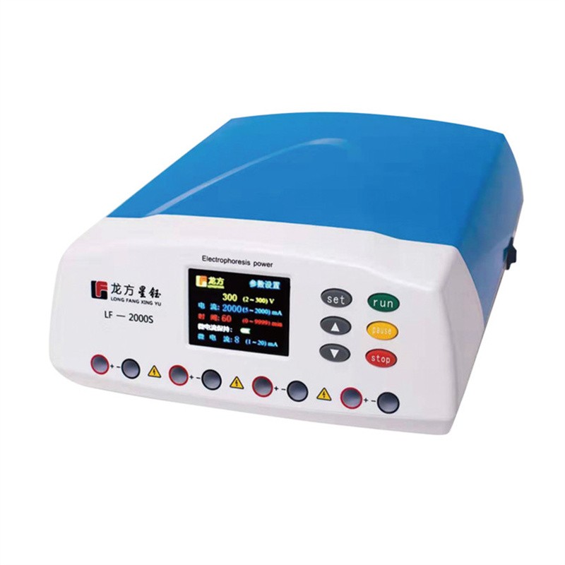 产品用途: 蛋白电泳、核酸电泳、转膜电泳 LF-2000S电泳仪电源产品特点: 1、外壳为PC+ABS优质材料,流线型设计,美观耐用。 2、高清彩色液晶显示屏,数据清晰。 3、电压、电流的显示精度为0.1,精确度高,稳定可靠。 4、微电流保持功能,定时结束后可自动切换到微电流保持状态(此功能可人工关闭),可以有效维持电泳条带不扩散。 5、微电脑智能控制,具有存储记忆功能和过压、过流、过载、变载、空载等多项报警保护功能。 LF-2000S电泳仪电源技术参数: 1、输出组数:4组并联输出。 2、输出电压:6-300V(显示精度:0.1V )。 3、输出电流:5-2000mA (显示精度:0.1mA)。 4、实际偏离度:≤3%。 5、产品重量:1.5 kg。 6、外形尺寸:280x240x120mm。 |