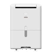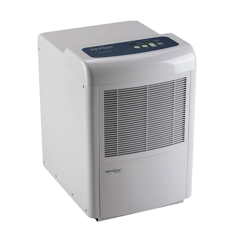 一、功能简介: ◆HFC-134a无氟制冷剂,强除湿,低噪音。高效压缩机、热交换器及高等级零部件,结构紧密,确保整机质量。高级POM机壳,外型美观。全自动控制显示面板,轻触式按键,智能化操作。 ◆环境相对湿度按键调节设定值: 设定范围:35%~70%RH,每次按5%递增或递减。 两档风速选择:高速/低速。 1~24小时超长定时功能。 ◆高精度湿度感应装置,全自动控制环境相对湿度: 当环境相对湿度达到设定模式范围时,压缩机自动停机,风扇继续运转,保持空气循环流通;当环境相对湿度超过设定模式范围时,压缩机自动启动运转除湿。 ◆电源保护控制装置:配备突波吸收装置及不易燃保护盒,构成双重保护,避免电源不正常时保险丝熔断产生火花可能引起的火灾事故。 ◆压缩机保护装置:控制压缩机在开机或再次启动时延时3分钟才开始运转,保护压缩机在电源不正常或频繁开/关机时可能受到的损坏。 ◆高精度自动除霜装置:可控制机器自动除去冷凝器因低温产生的结霜并再次启动除湿。 ◆防溢水自动停机报警:当水箱水满时,控制显示面板上的水满指示灯亮起,机器自动停机,并间歇发出“哔、哔”声,警示水箱已经满水。 ◆内置式7公升带提把超大水箱,倒水轻松快捷。 ◆自动连续排水接口:可连接水管直接将水排出室外。 ◆底座高强度万向转轮:确保机器稳固放置又方便移动。 ◆长效纳米银离子空气过滤网: 可杀灭随空气循环通过滤网的大肠杆菌、真菌、淋球菌等几百种病菌,且对人体无害。 三、CH950B除湿机技术参数: