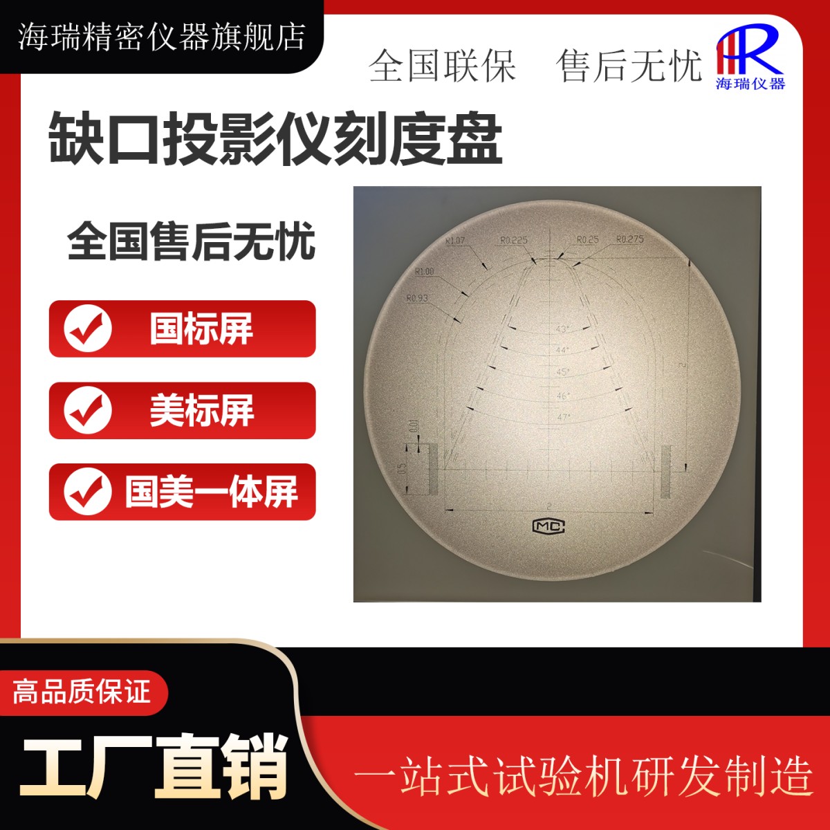 是冲击缺口投影仪的核心光学配件,采用光学刻线工艺,内置国标标准缺口基准轮廓,将加工后的冲击试样缺口经光学放大投射至屏面