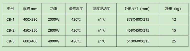 本公司生产精密石墨电热板,广泛运用于样品的烘焙、干燥和作其他温度试验,是生物、遗传、医药卫生、环保、生物实验室、分析室、教学科研的必备工具。二、产品特点: 此款石墨电热板采用优质的石墨板面,有优越的抗腐蚀性能,升温快切均匀,操作简单,使用安全,控温系统采用微电脑芯片处理器,控温精度高,功能强,仪器采用特殊工艺制作,做工精细,适用寿命长,外观美丽大方 技术参数: