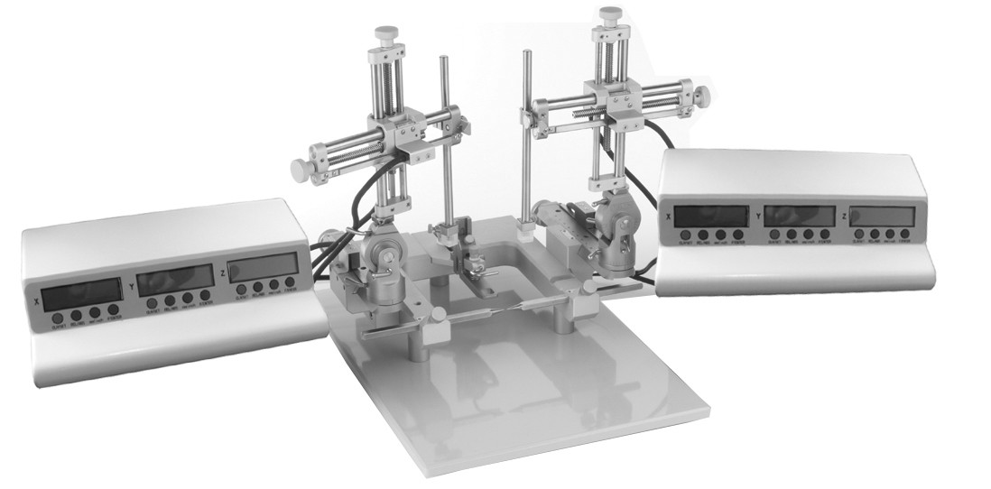 具有标准型脑立体定位仪的所有特点,并在原有标准脑立体定位仪的三维操作臂基础上增加了位移传感器及LCD显示屏,直接读取数字式移动距离,极大地方便了实验读数过程;三维操作臂显示屏任意点校零,根据图谱直接进行定位,避免二次读数及计算,简化了实验操作过程;移动距离读数精度为10微米,满足更高实验要求;传感器及LCD显示屏内置一体嵌入操作臂,不需额外放置显示屏及连接线,外表美观并节省操作台空间;纽扣电池使用寿命长,更换维护方便。 一、技术指标: 1、读数精度:10微米 2、显示:LCD显示屏(X、Y、Z三轴)(双臂操作臂模式) 3、材质:合金材料 4、尺寸:350×250×340mm 5、操作臂360度回转,摆动幅度180度 6、计数精度:±0.01mm 7、三维推进器精度:±0.01mm 8、三维推进行程:80mm 9、可进行上下、左右、前后、旋转等精确定位 10、重量:5.5kg 11、附大鼠脑图谱1本 12、双操作臂模式 二、主要特点: 1、 LCD显示 a. 数字清晰,便于读数。 b. 刻度数字双显示,非常清晰,使读数分辩率精确至0.01mm 2、 移动平滑 三角形的导轨使之能够进行快速定位。其通用的接点便于实验者横向或纵 向移动电极,锁定装置能够将电极以任何角度固定,不会滑脱。操作臂可以从 支架上旋转一定的角度,以便于实验动物的固定。 |