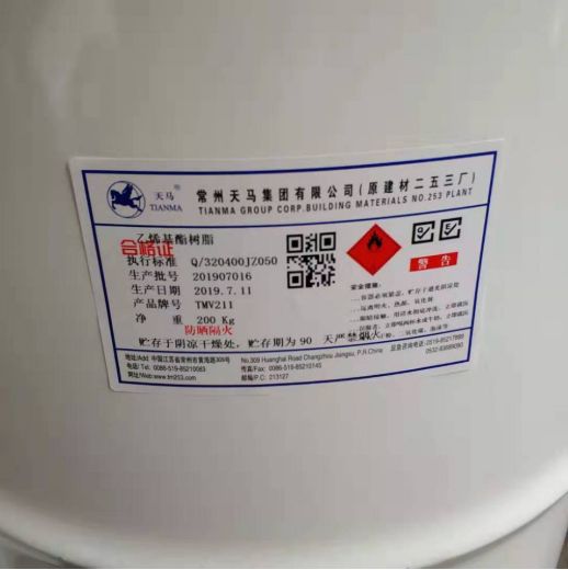 一、简介 TM-V211属于双酚A环氧型乙烯基酯树脂,是高性能耐腐蚀树脂,具有硬度高,耐热性优异,高延伸率和玻璃纤维的浸润性好等优越的综合性能。与通用性(富马酸改性)乙烯基酯树脂相比,由于其更低的酯基含量而具有更好的耐腐蚀性,产品综合性能与国外同类产品相当。