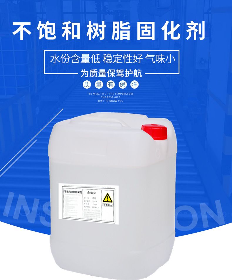 2、产品使用:固化剂颜色是白色透明的配合树脂使用,跟树脂的比例是2%,根据天气的温度适当也可以根据自己操作的时间长短调整,需要凝胶时间快点,就加多一点,需要凝胶时间快点就多一点,需要凝胶时间慢点,就少一点。