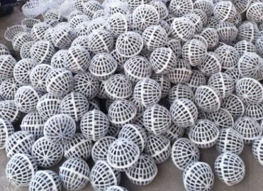 悬浮球形填料 悬浮球形填料又称生物球填料。悬浮球形填料由具有耐腐、耐温、耐老化、高强度的高分子聚合物注塑而成的多孔球状骨架和特殊工艺制成的弹性毛丝单体组合而成。 悬浮球形填料由具有耐腐、耐温、耐老化、高强度的高分子聚合物注塑而成的多孔球状骨架和特殊工艺制成的弹性毛丝单体组合而成。使用时直接投入水中,在水里似沉非沉,能全方位**活动,无死区。可视水质浓高低和水量的增减,填料可多可少。实际投放量为池体积的30%-70%,进出口需用格网拦住,一面随水漂走。 |