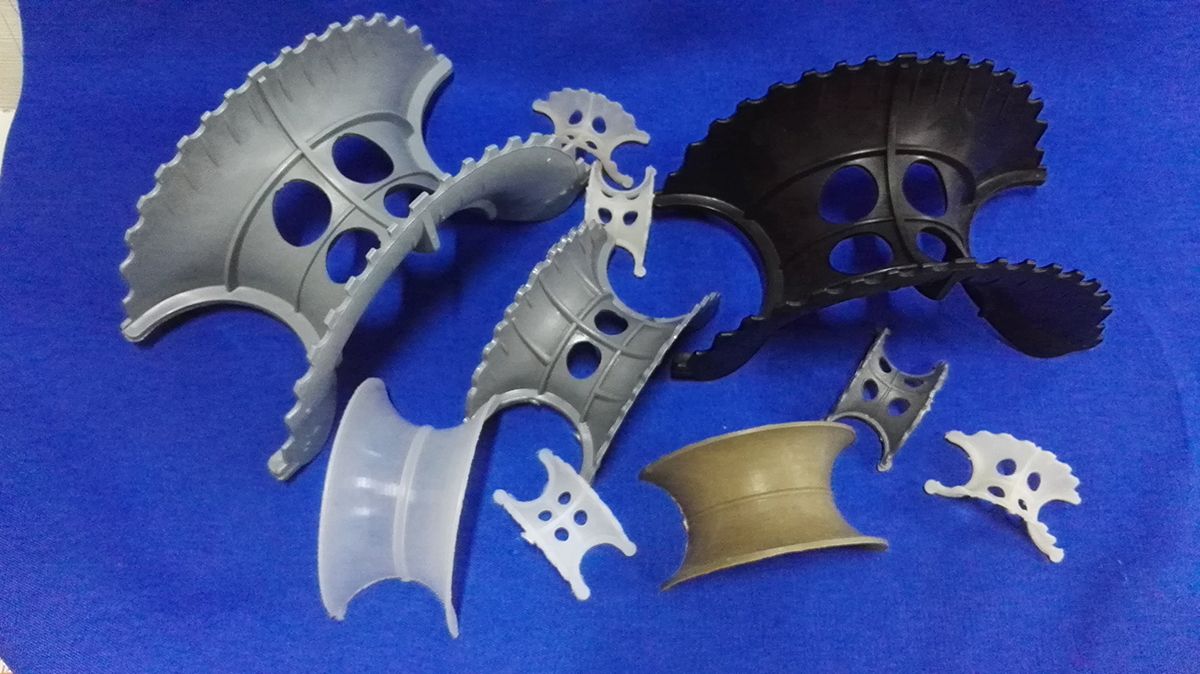 异鞍环塑料鞍型填料类似于马鞍形状,这种填料层中主要为弧形的液体通道,填料层内的空隙较环形填料(尤其较拉西环填料)更加连续,可使气体向上流动时主要沿弧形通道流动。 产品特点:它具有空隙率大,压降和传质单元高度低,泛点高、汽液接触充分、比重小、传质效率高、压降低,通量大,效率高,负荷弹性性大,抗污性好等特点。广泛用于塑料异鞍环应用于脱蜡油精制萃取、脱甲烷、苯酐精制等。