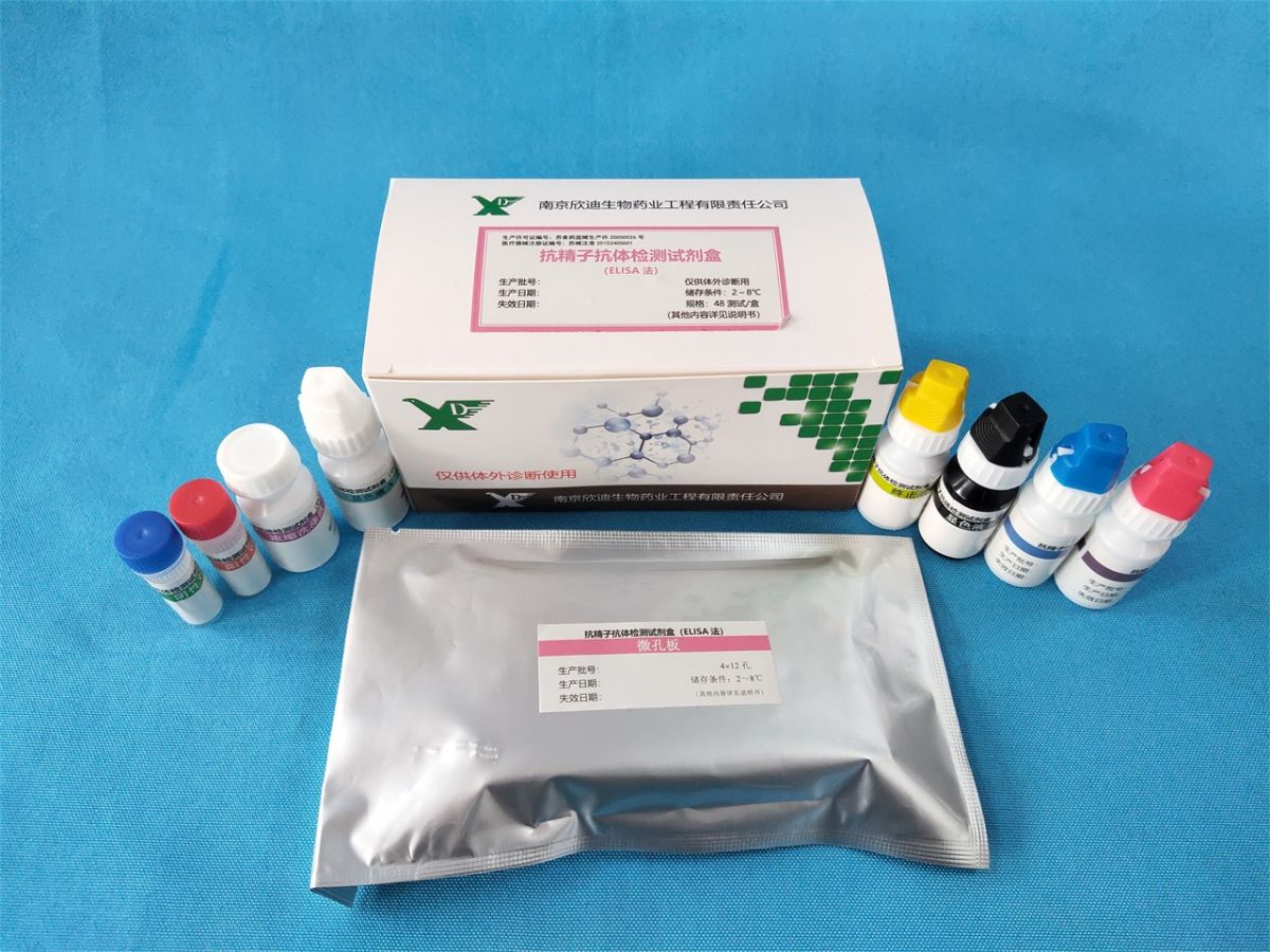 【产品名称】 通用名称:抗精子抗体检测试剂盒(ELISA法) 英文名称:ELISA detection kit for anti-sperm antibody 【包装规格】 48测试/盒(微孔板非真空包装) 【预期用途】 本试剂盒用于人血清、精浆和宫颈粘液中抗精子抗体(AsAb)的体外定性检测。男性输精管结扎,或男女生殖道发生感染、炎症损伤时,均有可能造成精子抗原与机体免疫系统发生反应而产生抗精子抗体。抗精子抗体对精子有制动和细胞毒作用,从而阻碍了精子与卵细胞的结合,是导致免疫性不孕不育的原因之一。
