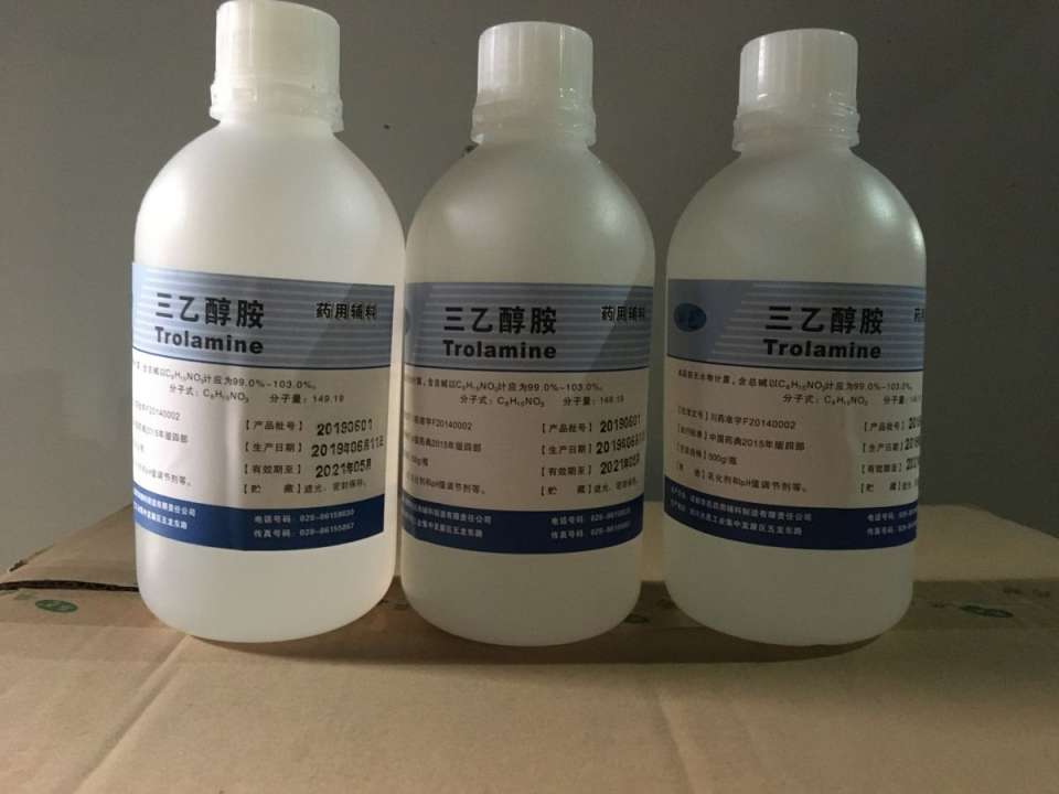 在化妆品(包括皮肤洗涤、眼胶、保湿、洗发剂等)中用作乳化剂、保湿剂、增湿剂、增稠剂、PH平衡剂。在化妆品配方中用于与脂肪酸中和成皂,与硫酸化脂肪酸中和成胺盐。三乙醇胺是乳膏制剂中常用乳化剂,用三乙醇胺乳化的乳膏产品具有膏体细腻,膏体亮白的特点,另三乙醇胺与高级脂肪酸或高级脂肪醇形成的胶体相稳定性好,产品质量稳定,可容外加成分比重高。三乙醇胺是含有卡波姆等酸性高分子凝胶的最常用中和剂,三乙醇胺通过与卡波姆的羧基中和,形成稳定的高分子结构,达到增稠和保湿的应用效果。