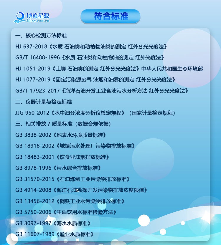 符合国标“HJ637-2018水质 石油类和动植物油的测定 红外分光光度法”
