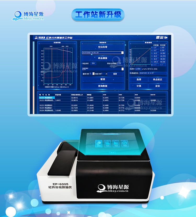 1)红外三波数三波峰油类吸收扫描谱图清晰,每一个水样独立吸收峰谱图,可溯源可判断数据准确与否。