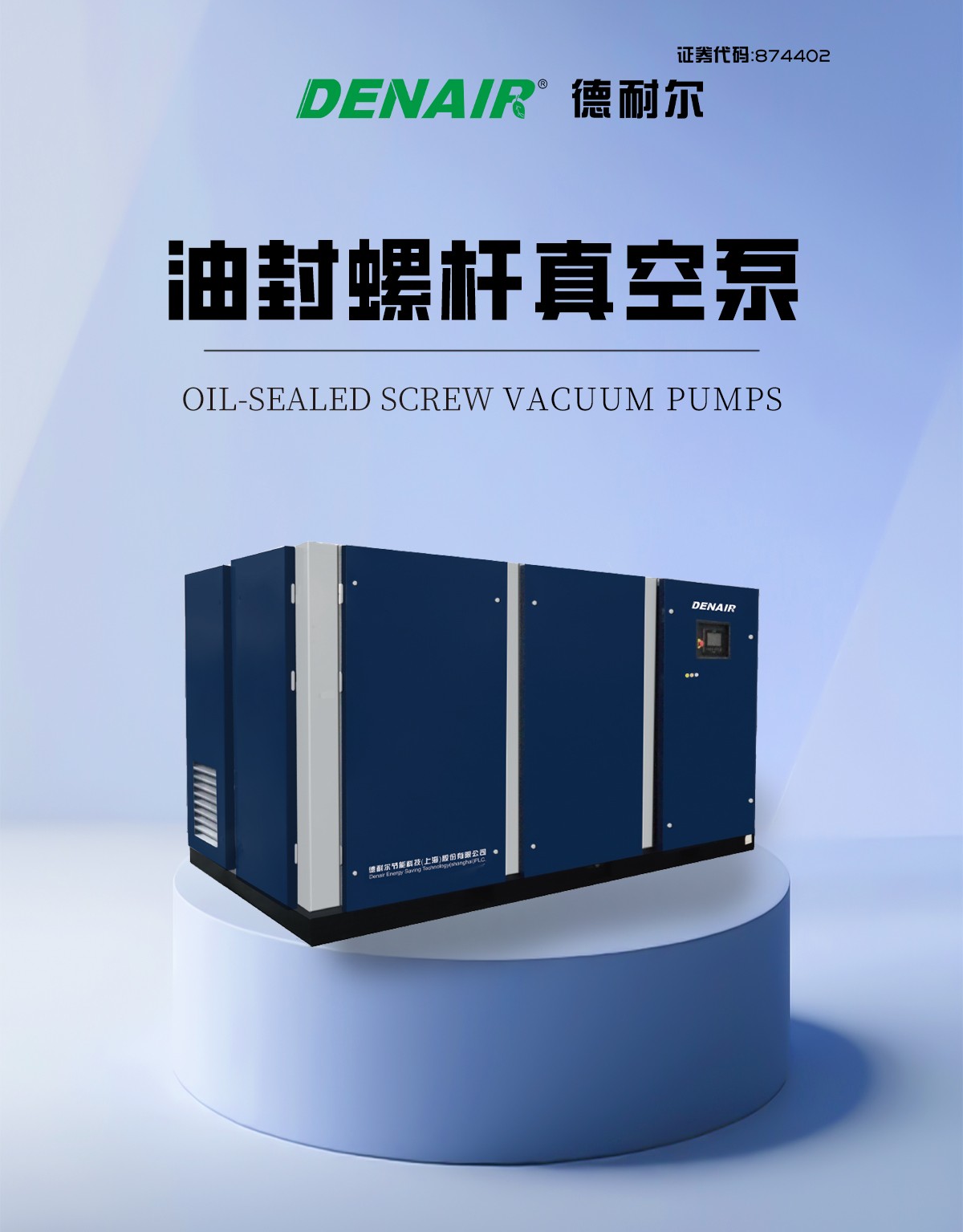 德耐尔油封螺杆真空泵是德耐尔主打中低真空、大抽量、稳定耐用、高性价比的工业容积式螺杆真空设备,区别于干式无油螺杆泵,齿轮箱 / 轴承油封润滑、泵腔无油、轴端多重密封隔油,适配工厂通用工艺真空、粗中真空大量用气场景,是厂务真空、化工、包装、锂电后端工艺的主流选型。