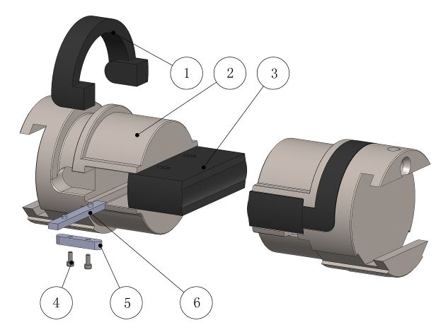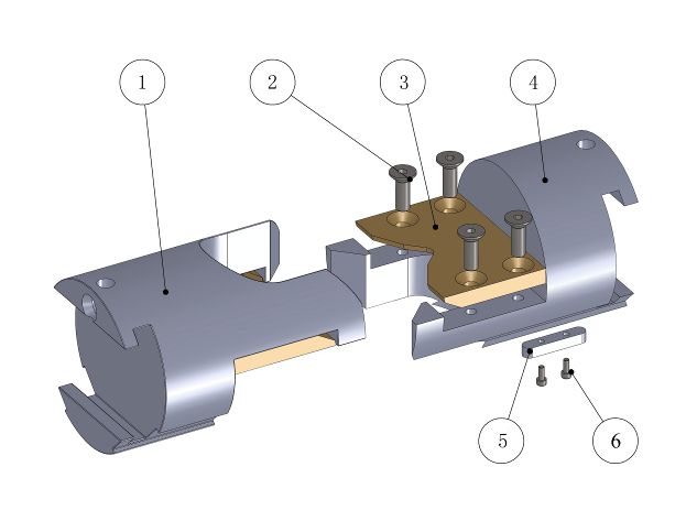 1.顶部胶芯 2.闸板体 3.前部胶芯 4.螺钉 5.定位键 6.导向键 | 1.上剪切闸板体 2.螺钉 3.剪切刀片 4.下剪切闸板体 5.定位键 6.螺钉 |