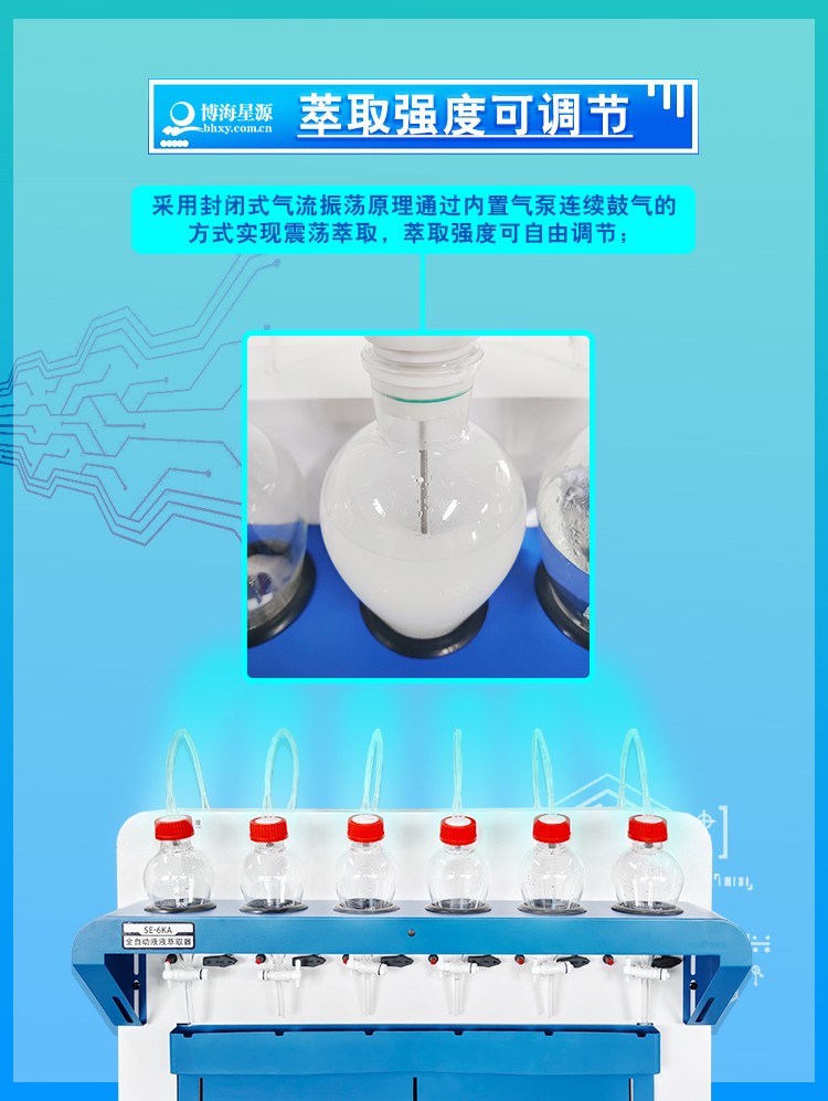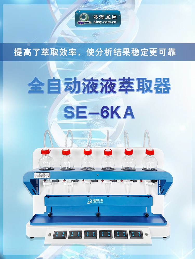 在日常化验工作中,传统萃取常采用震荡或分液漏斗手摇方式,这类方法操作不便、效率较低、劳动强度大,且所用溶剂可能对实验人员健康产生影响,SE-6KA