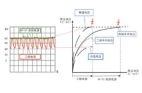 火花控制性能好 与工频电源相比,高频电源脉冲时间极短,火花控制性能好,仅需很短的时间(<25μs,而工频电源需要10000μs)即可检测到火花发生并且立刻关闭供电脉冲,因而火花能量损失很小,电场恢复快(仅需工频电源恢复时间的20%),从而进一步提高了电场的平均电压,提高了除尘效率。
