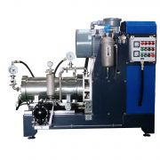 1、带销钉的涡轮结构转子,具有强剪切力、动力分布均匀、研磨腔内物料和介质流动性好等特点,能实现对物料的高效研磨分散,研磨细度1μm—50nm; 2、采用离心式分离器,具有过流面积大、分离效果好、适用寿命长等优点; 3、使用耐磨损、耐腐蚀的集装式双端面机械密封,并配置了机封润滑冷却监测和压力平衡机构,机封装拆更容易,维修更方便; 4、变频调速,可根据物料的需求选择相应研磨转速,达到理想研磨效果; 5、研磨腔体材质可以选择碳化钨、聚氨酯、氧化锆、氧化硅、碳化硅等,适合不同客户需求。 ◆Turbinerotorwithpinsstructure,withstrongshearforce,powerdistribution,goodliquidityofmediaandmaterialsingrindingchamberandothercharacters,toachieveefficientmaterialdispersion,grindingfineness1μm~50nm; ◆Adopt centrifugal separator, with the advantages of large flow area, good separation and long using time etc ; ◆Use the wear and corrosion resistant cartridge double mechanical seal, and configure the mechanism of mechanical seal lubrication and cooling monitoring and pressure balance, easy assembly and disassembly, easy maintenance; ◆Frequency control, users can select the best grinding speed according to the needs of the material, to achieve the best grinding results; ◆The grinding chamber material can select tungsten carbide, polyurethane, Zirconia, silica, silicon carbide, etc., to meet the different customers’needs . 使用行业 纳米颜料、陶瓷墨水、磁性材料、氧化铝材料、电子浆料、硅酸锆材料、热转印喷墨、磷酸铁锂、医药、化妆品、非金属矿粉体、其它新型纳米材料。 nano pigment, ceramics ink, magnetic materials, aluminum materials, electronic pulp, zirconium silicate materials,thermal transfer inkjet inks, lithium iron phosphate, pharmaceuticals, cosmetics, non-metallic mineral powder and other new nano materials.