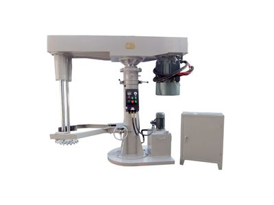 本类机型的特点是:搅拌、分散时空气的吸留量极少,固--夜混合分散与调匀的效果佳,用在高速搅拌分散,可使物料迅速溶解,颗粒变小。 本机结构特点是:由机架、轴承座、分散轴、分散盘、油缸、液压站和控制箱等组成。机架升降平稳可靠并可回转360°,能一机多缸使用。 电器配置:主电机、泵电机、按钮、指示灯可按用户要求配套普通型或防爆型。墙挂式电器箱(箱内电器为普通型)随机出厂,用户可根据现场条件将电器箱安装于车间配电室或其它合适位置,并按电气原理图铺设配线。 运转操作 1.运转前检查:检查电机旋转方向(按运转箭头所指方向),检查三角胶带松紧状态,液压站油位情况。 2.接通电源,起动油泵电机,使机架上升到适当的高度,然后将装入浆料的容器放在分散机盘的下方,将机架徐徐下降,使分散盘插入容器内适当深度位置,待下降停止后,即可启动主电机,对容器内的浆料进行搅拌混合和分散。 3.在运转中如有异样声音,应立即停止运转,进行检查,找出原因,消除故障后才可重新开车。 重要注意事项 分散轴应按旋转指示方向转动,不能反转,以免造成事故,在无物料的情况下,请不要开动主机,主机运转前,必须用手柄锁紧机架以免机架晃动。 吊装运输和安装 吊装运输,本机为大体积设备,在机身两侧各有另环一只,以备吊装之用,运输时应尽量用钢绳扎紧,减少震动及摇晃,停放时应按包装位置放置,不能倒置和卧放。 安装设备应以分散轴为基准,垂直对准水平面安装,并在预先作好的基础上用地脚螺栓固定后,方可使用。基础要求请参见基础图。基础保养期满后才能开车生产。 使用行业 本类机型适用于涂料、油漆、染料、颜料、医药、造纸等行业的物料溶解混合及分解。 技术参数 双轴变频调速分散机机型号及参数