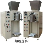 阀口型定量包装机(粘性粉、325-2500目专用机型) 组成部分:精车工螺杆、防架桥装置、转盘阀装置、变频控制系统、称重控制系统、PLC控制系统等。 工作原理:利用称重系统、PLC控制变频螺旋快、中、慢加料。 产品亮点:变速螺杆分为全螺杆型和半螺杆型,全螺杆型可将物料直接送入包装袋内,主要针对比重大、物料流动性及差、物料比较粘稠物料所设 计。半螺杆型利用高速变频螺旋外加辅助空气间接将物料送入包装袋内,主要针对325目-2500目流动性好,不易堵塞物料所设计。 产品特点:采用变频调速功能,电子自动计量技术,由PLC程序控制,可完全解决超细粉一次灌装完成、具有计量准确、无粉尘等特点。 系统集成:PLC程序控制,自动转盘阀门,中文触控介面,称重模块计量。 目标用户:全螺杆型如:钛白粉、湿法硅酸锆、云母粉、沉淀钡、小颗粒粉体、干粉砂浆、添缝剂等。半螺杆型如:重质碳酸钙、重质硫酸钡、石 英粉、淀粉、硬脂酸锌钙镁、稳定剂、腊粉、色粉、氢氧化镁铝等。 技术参数: