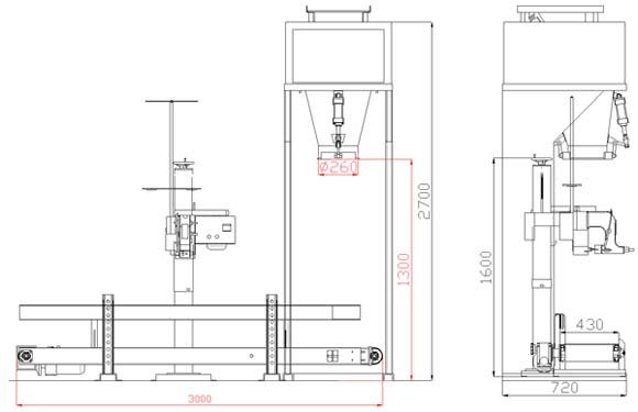 敞口型粉体定量包装机(敞口袋、开口袋专用机型) 组成部分:精车工螺杆、堵塞阀装置、气动夹袋装置、变频控制系统、称重控制系统、PLC控制系统等。 工作原理:利用称重系统、PLC控制变频螺旋快、中、慢加料。 产品亮点:变速螺杆将物料直接送入包装袋内,可配合输送缝包机一起使用。 产品特点:采用变频调速功能,电子自动计量技术,由PLC程序控制,可完全解决超细粉一次灌装完成、具有计量准确、无粉 尘等特点。 系统集成:PLC程序控制,自动转盘阀门,中文触控介面,称重模块计量。 目标用户:化工、食品、医药、建材、矿产、港口等行业粉体颗粒体产品。 技术参数: