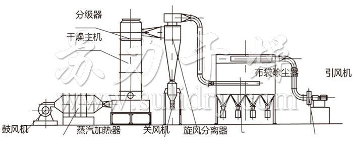 性能特点 ◎旋流、流化、喷动及粉碎分级技术的有机结合。 ◎设备紧凑,体积小,生产效率高,连续生产,实现了"小设备,大生产"。 ◎干燥强度大,能耗低,热效率高。 ◎物料停留时间短,成品质量好,可用于热敏性物料干燥。 ◎负压或微负压操作,密闭性好,效率高,消除环境污染。 适应物料 有机物:阿特拉津(农药杀虫剂)、月桂酸隔、苯甲酸、安息香酸、杀菌丹、草酸钠、醋酸纤维素、有机颜料等。 染料:蒽醌、黑色氧化铁、靛蓝颜料、丁酸、氢氧化钛、硫化锌、各种偶氮染料中间体。 无机物:硼砂、碳酸钙、氢氧化物、硫酸铜、氧化铁、碳酸钡、三氧化锑、各种金属氢氧化物、各种重金属盐、合成冰晶石等。 食品:大豆蛋白、胶凝淀粉、酒槽、小麦糖、小麦淀粉等。 技术规格
