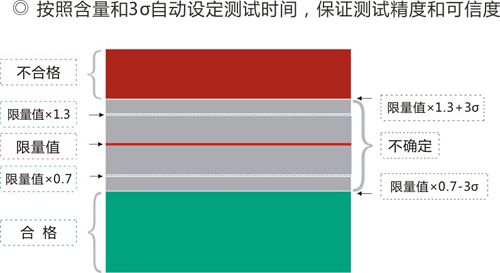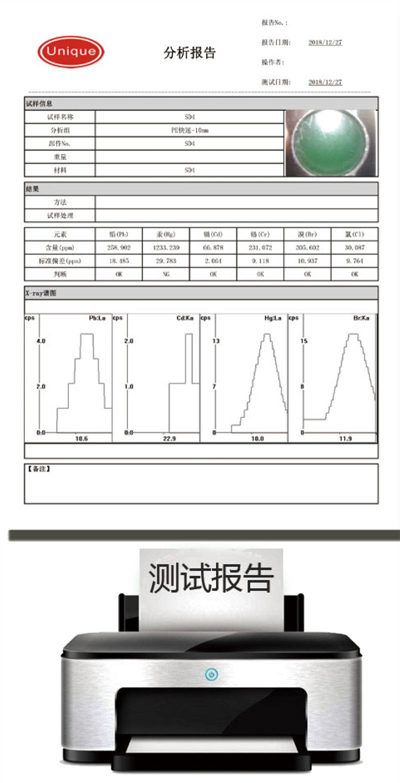 ◎简单的测试过程,初学者也可掌握 测试开始后,自动判定样品的材质,自动选择相对应的测试条件和工作曲线,自动确定测试时间,测试结果自动根据用户的管控标准显示,测试数据自动存储在用户指定的目录中。