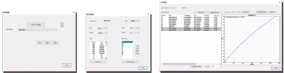 内置工作曲线 标准配置应对RoHS法规的铅(Pb)、汞(Hg)、镉(Cd)、总铬(Cr)、总溴(Br)和总氯(Cl)六个元素的工作曲线。例如塑胶材料中聚乙烯(PE )、聚氯乙烯(PVC)和工程塑料(ABS)的工作曲线,还包括金属材料中铜合金(Cu )、铝合金(Al)、铁合金(Fe )和锡基合金(Sn )的工作曲线。全面涵盖了电子电气行业的主要测试需求。 ★ 塑胶中锑(Sb)元素工作曲线(选购) ★ 塑胶中锡(Sn)元素工作曲线(选购)。 开放式工作曲线 符合国标要求(GB/T 3352-2016),如果有特殊需求,使用标准物质制作工作曲线,应对其他样品的测试。测试条件同样开放,用于设置对应样品的测试需求。