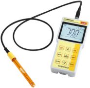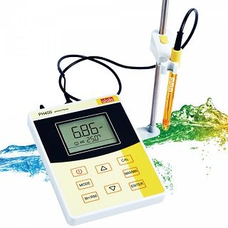 pH400教育型 是专门针对学校或研究所学生实验室基础应用的一款pH计 性能特点 ·pH一点到三点自动校正,有校正指引功能; ·自诊断功能,(标准溶液选择错误,pH电极斜率超标<85%或>110%,pH电极零电位超标-60mV或>60mV等)并提示相应信息;★ ·标准溶液超标、污染报警提示;★ ·可使用CH/ USA一共6种标准缓冲液校正; ·具终点稳定显示和自动锁定显示模式,优化了读数的精度和响应时间;★ ·配置三合一pH复合电极★ ·pH自动/手动(0-100.0)℃温度补偿; ·数据存储50组,并能回显和清除储存值;可记录和显示最大最小值;★ ·温度单位可选择℃或℉; ·ORP测量模式; ·80×58mm大屏幕LCD,大字体显示,清晰,易操作; ·固定垂直升降电极支架,机器与支架完美结合,稳定可靠;★ ·操作界面简单;轻触式面板按键,防潮、防尘、防油污使用寿命长;★ ·仪器可一键恢复出厂设置★; ·符合IP54防尘防溅等级,仪器插口有橡胶帽密封保护★。 技术参数
