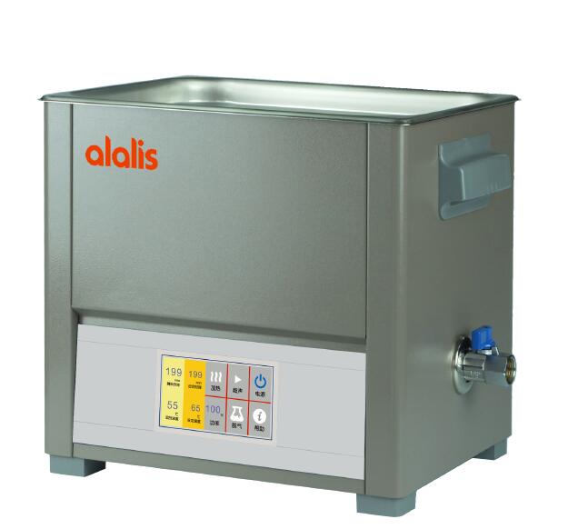 安莱立思AS系列超声波清洗器能快速、彻地清除工件表面上的各种污垢。清洗带有空腔、沟槽等形状复杂的精密零件,且对工件表面无损。广泛应用在高等院校、医院、工业、国防、生物医学等方面。 触摸屏 LCD显示 LCD touch screen 304 不锈钢槽 Stainless steel 304 tank 工作频率 Frequency:40kHz 温度设定 Temperature:20 ~ 65℃ 功率可调:40% ~ 100% 定时 Timing:1 ~ 199 min 产品特点 ・美国先进技术,符合欧美日多国标准。Advanced technology in the United States, Conforms to the European and American andJapan standards ・独有的内置防漏保护装置。Unique built-in leakproof protection device ・优质耐腐蚀304不锈钢水槽。Stainless steel 304 tank ・外壳采用防腐喷漆涂层,满足各种实验室洁净要求。Paint coated case,meet the requirements of antiseptic and hygienic lab environment ・40kHz超声工作频率,Ultrasonic frequency of 40 kHz ・脉冲宽度调制,输出功率可调,提高清洗能力。PWM control, adjustable power output,Best cleaning ability ・独立的排氧脱气功能。Independent degas function ・水槽工作温度以及超声时间可自行设定。The working temperature and ultrasonic time of the sink can be set ・触摸屏显示,人性化操作界面,形象图标符号,操作直观简单高效。Touch screen, Humanized operation interface, Image icon symbol ・超强记忆存储功能,工作参数可在断电后自动记忆保存。Automatically save last parameters and recalled when unit is turned back on ・减震防滑机脚,稳固安全。Damping and antiskidding machine foot, safe and safe ・环境适应性强,超声效率可在不同环境中保持一致。Maintain ultrasonic efficiency at different temperatures ・自诊断功能,具有功率过载和过热保护功能。Frequency overload and thermal protection 技术参数