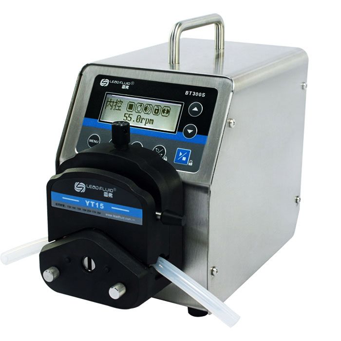 BT300S调速型智能蠕动泵全新的一代调速型智能蠕动泵,采用Cortex-M3内核处理器,高品质步进伺服电机驱动,转速控制精度高达±0.2%,面膜按键无级调速(转速范围0.1~350rpm),可匹配DT系列\YZ15\YZ25\YT15\YT25等多款高性能泵头,单通道流量范围宽至0.006-1690ml/min。通过雷弗APP软件,可对泵进行远程控制,并对运行状态实时监测。RS485通讯接口,兼容Modbus协议,可通过多种信号模式与计算机、单片机、PLC、变频器、人机界面等上位机连接,实现系统化集中控制。 · LF-LCD-OS软件系统,高清点阵液晶屏显示,中英文界面可切换,参数设置简单,状态显示直观; · 高品质大扭矩步进伺服电机驱动,转速精准、范围宽泛,运行平稳,可实现高精度的流量传输; · 工业级面膜按键操作,简单方便,耐用性强; · LF-EasyChange通用设计,大扭矩输出,扩展性强,可匹配多款高性能泵头; · 具有启停、调速、正反转、全速、掉电记忆等基本功能; · 可设定运行时间、间歇时间、循环次数等参数,满足定时定量、液体分装、流量测试等需求; · 具有转速缓停、回吸功能,可有效防止停机时液体滴落; · 具有按键锁定功能,防止误操作; · 可通过雷弗APP软件,远程实现启停、调速、定时运行等操作,并具有停机报警、更换泵管提醒等监测功能; · 不锈钢304材质外壳,有效防止各种有机溶剂的侵蚀,易清洁; · 内部结构采用双层式隔离设计,电路系统做特殊防护处理,有效提高防尘防潮防腐和抗氧化性能; · 超强的抗干扰特性,宽电压设计,适用于复杂的供电环境; · RS485通讯接口,全新的Modbus协议,方便与各种控制设备连接; · 可接受多种外部工控信号控制启停、正反转及转速调节,光耦隔离; · 支持启停、正反转、当前转速等工作状态信号输出; · 可外接热敏打印机(选配),实时打印运行参数; · BT300S调速型智能蠕动泵可选配漏液检测器、压力传感器、流量计、脚踏开关、脉冲阻尼器、沉头等辅助配件,满足个性化需求 技术参数 · 流量范围:0.006~1600毫升/分钟 · 速范围:0.1~350转/分钟 · 转速分辨率:0.1转(转速≤100rpm)、1转(转速>100rpm) · 转速精度误差<±0.2% · 显示方式:视窗77mm×32mm,单色132×32点阵液晶 · 语言界面:中文、英文切换 · 操作方式:工业级面膜按键 · 按键锁定:长按方向键锁定,长按启停键开锁 · 定时功能:定时运行时间0.1~999秒/分/时/天,间歇时间0.1~999秒/分/时/天 · 循环次数:0~999次(0为无限循环) · 回吸角度:0~720度 · 外控信号输入: (1)启动\停止:无源触点、外控输入电平(5~24V) (2)正转\反转:无源触点、外控输入电平(5~24V) (3)转速调节:模拟量0~5V、0~10V、4~20mA可设置 · 外控信号输出: (1)启动\停止:电平信号(跟随输入电压) (2)正转\反转:电平信号(跟随输入电压) (3)转速状态:模拟量0~5V · 外控数字通讯:RS485,支持MODBUS协议,DB15外控接口 · 电源电压:AC100~240V,50HZ/60HZ · 功率:50W · 工作环境:环境温度0~40℃,相对湿度<80% · 防护等级:IP31 · 外观尺寸:264×150×270mm(长宽高) · 驱动器重量:5.2KG 产品配置 BT300S调速型智能蠕动泵适用泵头及软管、流量参数