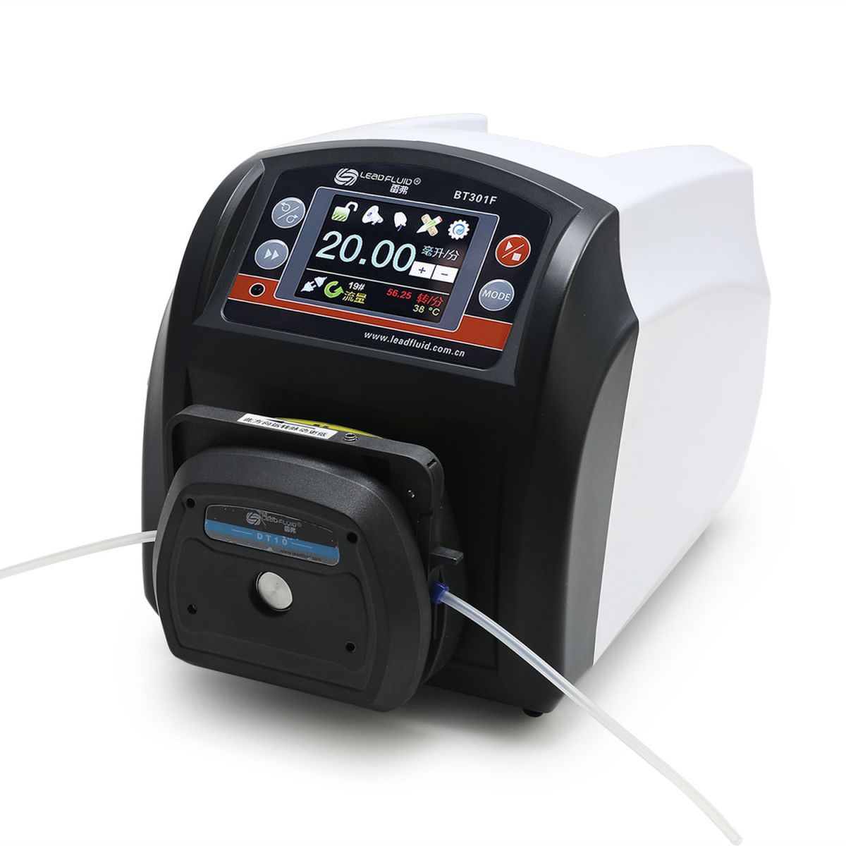 BT101F分配型智能蠕动泵,采用彩色液晶和触摸屏技术,操作界面简单,直观明了。主要适用于各种复杂的液体定量分配、精确计量和定量给料。对液量分装精度要求高时,使用液量分配模式更加方便;对产量要求高时,使用时间分配模式更加方便;需要将一定液体分装为若干份液体时请使用复制分配模式。设置为流量模式时,完全等同于一台流量型蠕动泵。为了减小不必要的风扇噪音,采用了智能温控技术。在RS485通讯中,因为采用了MODBUS协议,更易于与其他控制设备如计算机,人机界面,PLC等连接。 · 真彩色液晶屏显示,触摸屏加按键操作; · LF-Touch-OS软件系统,高效稳定,具有良好的人机交互模式,方便产品定制升级; · 具有液量分配,时间分配,复制分配三种工作模式; · 各种工作模式预存五组分配参数; · 电机精确转动角度控制技术,减小了传统的时间控制分配模式由于电机缓启动等因素造成的分配误差; · 启停、正反、全速,调速、状态记忆(掉电记忆)等功能; · 转速分辨率0.1转/分钟; · 流量显示,流量控制,流量累计; · 具有流量校正功能; · 蠕动泵专家系统,最大程度上方便用户的使用; · 智能温控功能,最大限度降低蠕动泵噪音; · 外控高低电平控制启停,正反,简易分装,光耦隔离;外控模拟量调节转速; · RS485通讯,支持MODBUS协议,方便与各种控制设备连接; · 内部结构采用双层式隔离设计,电路板加喷三防漆工艺,达到防尘防潮效果; · 超强的抗干扰特性,宽电压设计,适用于复杂的供电环境; · 驱动器流线型塑料外壳设计,产品外观专利保护,美观实用; · 可以安装不同泵头,实现不同泵头与驱动器组合; · BT101F分配型智能蠕动泵可实现外部脚踏开关控制起停,实现分配灌装功能;