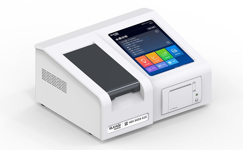 GL-500型多参数水质分析仪,针对污水检测研发的glos系统告别了传统式按键检测操作,8英寸IPS全彩触摸屏带给使用者全新的检测体验,引导检测模式,让使用者在弹指尖完成检测操作。它采用双比色系统,同时支持比色管测量和比色皿测量,先进的冷光源、窄带干涉技术及RAM处理器自动进行数据运算处理,直接显示及打印样品的浓度值。GL-500内置COD、氨氮、总磷、总氮、色度、浊度、悬浮物7种检测参数,并且配备预制试剂,只需要添加检测的水样即可读取水质浓度。 检测原理 GL-500多参数水质分析仪,常规检测项检测原理:COD的测定采用消解管密闭催化消解比色法,氨氮的测定采用纳氏试剂比色法,总磷的测定采用钼酸铵分光光度法比色,总氮采用碱性过硫酸盐消解光度法比色,选定水质检测项目,进口冷光源发射出光源信号至传感器,经RAM处理器进行数据的运算处理,直接反馈出样品浓度值,以单位mg/L显示。 产品特点 01、多参数检测:支持COD、氨氮、总磷、总氮、色度、浊度、悬浮物7种参数的测定。 02、检测精准:依据国家检测标准研发,广泛适用于生产生活废水的检测。 03、光源优势:采用进口冷光源,光学性能极佳,寿命长达10万小时。 04、操作智能:设备采用引导式操作,用户可根据提示轻松完成检测操作。 05、智能打印:可设置检测完成自动打印浓度结果,或选择手动打印模式。 06、连续测量:检测样品多,可开启连续检测模式,具备更高的检测效率。 07、性价比高:配备完善的耗材试剂,价格低、用量少。 08、预制试剂:为客户配套预制试剂,只需添加样品即可检测出值。 09、操作便捷:采用双比色系统,同时支持比色皿、比色管的测定,操作简单、高效。 10、智能程序:8寸IPS全彩触摸屏,搭配格林凯瑞研发的UI交互系统,操作简单省时。 技术参数