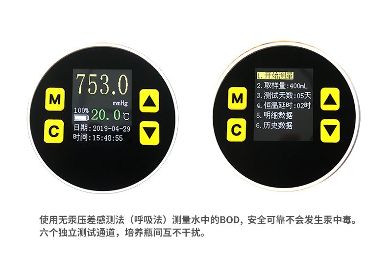 GL-602A型,BOD生化需氧量测定仪是根据国家标准《HJ505-2009》5日培养法,模拟自然界中有机物的生物降解过程,采用简单、安全、可靠的无汞压差感测法测量水中BOD。全智能化设计,××的研发工艺和设计制造,实验过程无需实验人员值守;适用于排污企业、环境监测、污水处理厂、第三方检测机构、科研、高校等领域的生化需氧量测定。 浓度直读:可以测量1-6个样品无需换算、直接显示BOD浓度值。 独立灵活:测试个体独立,可以随时决定单个样品开始时间。 数据记录:可随时查看当前实验数据,以及五日生化需氧量历史数据。 安全可靠:采用无汞压差法,无汞污染,且数据准确可靠。 控制系统:采用微处理器控制系统,自动完成测量过程,无需专人看管。 量程范围:量程范围广,且可选择,可选择测定0-4000mg/L的BOD数值,无需稀释。 操作简单:只需要简单的按键即可完成设置,按照量程设置的体积数将水样装瓶,即可完成测试。 配件齐全:配备实验所需所有试剂及配件,并配备了系列溢流瓶,方便准确快速的取样。 液晶显示:每个测试帽有彩色液晶显示屏,独立显示测试时间和测定结果、取样量等。