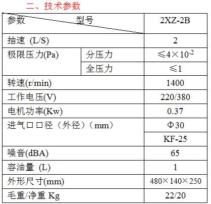直流旋片式真空泵是适用于抽吸空气及其它一般性气体。采用油泵强制进油装置,在进气口压强≤1.33×103时,仍可连续运转的优点。它可单独使用,也可用于增压泵、扩散泵、分子泵的前级泵、维持泵、钛泵的预抽泵用,广泛适用于真空冶金、真空镀膜、真空干燥、冷冻干燥、真空脱气、真空包装、真空吸附、真空成形、食品包装、印刷、溅射、真空铸造、光伏、航空科技领域、化工、电子、冰箱、空调流水线特点和实验室等真空作业以及配套使用。 直流旋片式真空泵特点: 1、配制特殊设计气镇阀,防止泵油混水,延长泵油的使用时间; 2、抽气效率高、极限真空高、使用寿命长; 3、设有自动防返油止回阀,永不返油; 3、小口径2XZ-2B真空泵专配真空干燥箱、冻干机、印刷机械、镀膜机、手套箱、冰箱流水线、照明等; 4、可配小口径转换接头、KF接口、法兰接口; 5、当抽吸含有蒸气、颗粒、腐蚀性气体,在泵的进气口须安装辅助设备,如冷凝器、除尘器等。 直流旋片式真空泵展示