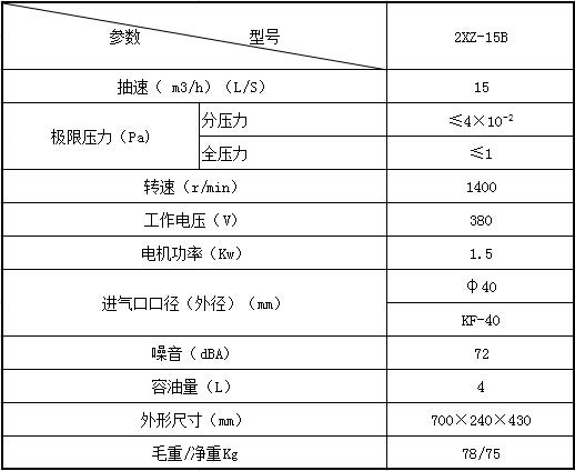 2XZ-15B直联旋片真空泵是适用于抽吸空气及其它一般性气体。采用油泵强制进油装置,在进气口压强≤1.33×103时,仍可连续运转的优点。它可单独使用,也可用于增压泵、扩散泵、分子泵的前级泵、维持泵、钛泵的预抽泵用,广泛适用于真空冶金、真空镀膜、真空干燥、冷冻干燥、真空脱气、真空包装、真空吸附、真空成形、食品包装、印刷、溅射、真空铸造、光伏、航空科技领域、化工、电子、冰箱、空调流水线特点和实验室等真空作业以及配套使用。 2XZ-15B直联旋片真空泵特点: 1、配制特殊设计气镇阀,防止泵油混水,延长泵油的使用时间; 2、抽气效率高、极限真空高、使用寿命长; 3、设有自动防返油止回阀,永不返油; 3、专配真空干燥箱、冻干机、印刷机械、镀膜机、手套箱、刻蚀机、冰箱流水线等; 4、可配小口径转换接头、KF接口、法兰接口; 5、当抽吸含有蒸气、颗粒、腐蚀性气体,在泵的进气口须安装辅助设备,如冷凝器、除尘器等。 2XZ-15B直联旋片真空泵展示