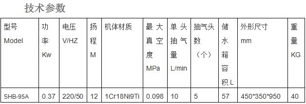 1、工作原理与台式泵相同。 2、主机采用5抽头,可单独或并联使用,用五通管并联后抽气量大,可满足大型旋转蒸发仪或反应釜的需要。 3、槽体为聚氯乙烯(PVC)材质,外壳采用优质碳素结构钢冷轧板,表面静电喷塑。 4、射流器为铜材质,三通、逆止阀、抽气咀材质为PP。 5、装有脚轮,移动方便,适应实验室、车间灵活配置。 SHZ-95A型循坏水真空泵是在循环水多用真空泵的基础上,根据实验室面积较小这一特点,参照国外同类泵,缩小体积改进而成,最适用于配套旋转蒸发器、反应釜、低温冷却泵等使用,具有体积小、重量轻、外形美观等特点,5表、5头抽气,并设有加冰孔、射流装置。