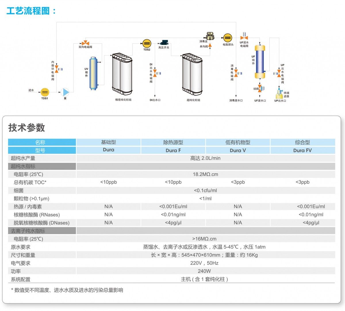 高级别实验室用超纯水的卓越选择!以蒸馏水等纯水为水源,方便快速的制造DI去离子水和UP超纯水。系统产水量:高达2.0升/分钟,去离子水电阻率>16MΩ.cm超纯水电阻率达到18.2MΩ.cm,完全符合GB6682-2008,ASTM,CPA,CLSI,EP和USP制定的最高级水质标准。