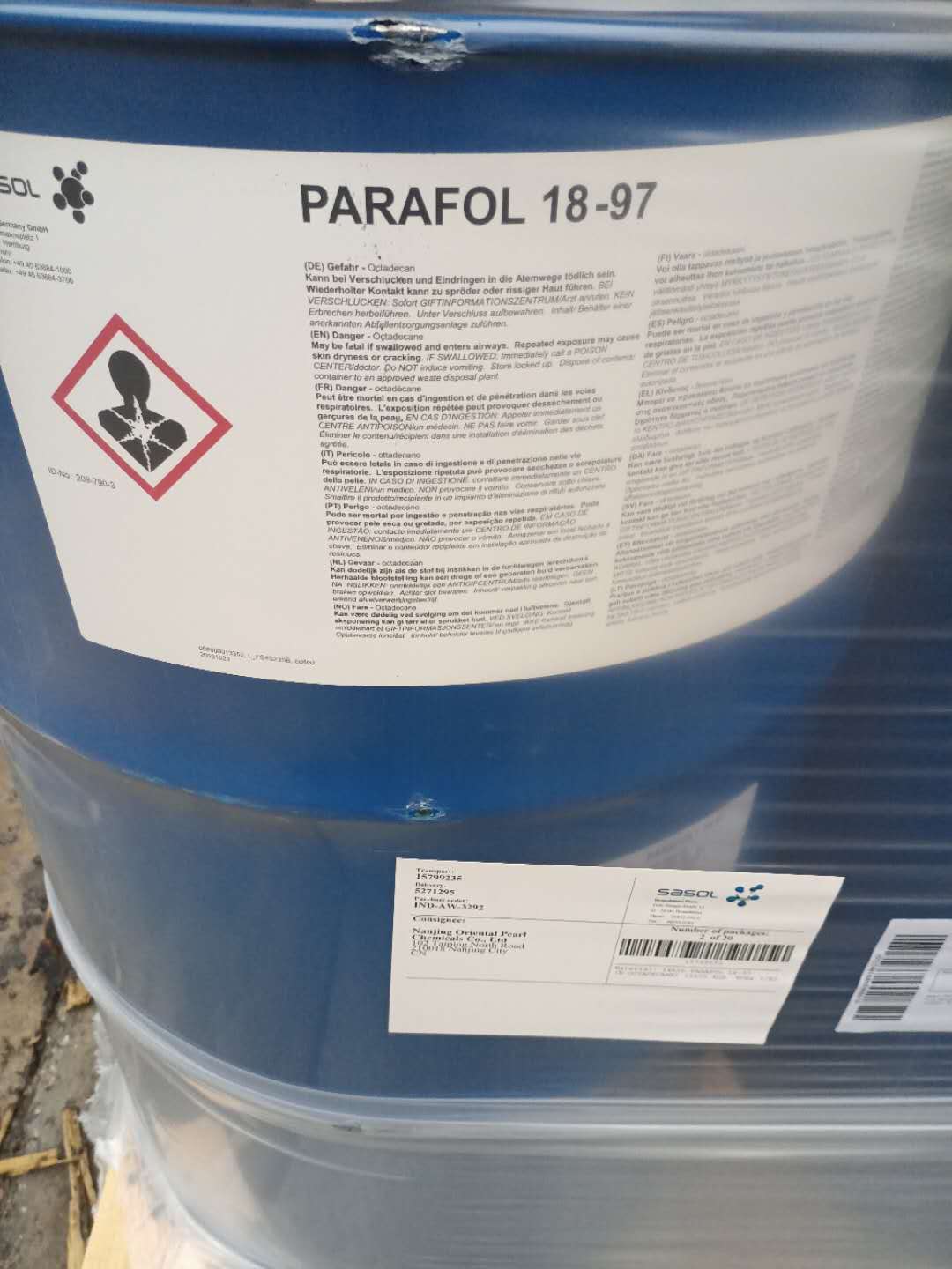 正十八烷 沙索 18-97 sasol C18 n-Octadecane 分子式:C18H38 分子量:254.49 纯度:99% 包装:155kg 产地:德国 品牌:沙索 CAS号:593-45-3 性状:无色液体 相对密度(d4) :0.777 熔点(℃):28.18 沸点(oC):316.1 闪点(℃):165 折射率(nD) :1.439