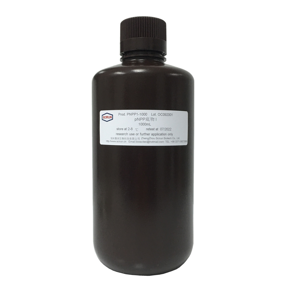 对硝基苯磷酸盐(pNPP)是碱性磷酸酶(AP)最常用的底物之一。在微孔中加入底物后,在AP酶作用下,PNPP生成黄色水溶性反应产物,溶液变成对硝基苯酚的黄色,该反应产物在405nm处有较大光吸收。赛润生物研制的底物系统提高了碱性磷酸酶的活性,同时减少pNPP的自发水解。 赛润生物供应3种不同动力学活性的pNPP底物: 1. pNPP底物 Ⅰ 主要成分:二乙醇胺,对硝基苯磷酸二钠; 2. pNPP底物 Ⅱ 主要成分:二乙醇胺,对硝基苯磷酸二钠; 推荐用于显色15~30分钟; 3. pNPP底物 Ⅲ 外观:无色至略淡黄色液体 主要成分:二乙醇胺,对硝基苯磷酸二钠; 推荐用于显色30~45分钟; 冻融循环不影响其性能。 pNPP底物对光敏感,应避免日光、紫外线直接照射。 使用建议: 1、使用前请平衡至室温。未显色的底物应为无色至淡黄色液体。 本产品在科研院所、IVD厂商中广泛使用!欢迎联系获取您的优惠报价! |