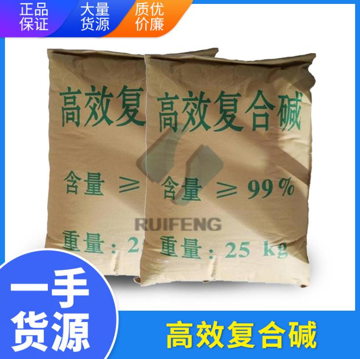 复合碱可替代氢氧化钠(烧碱)工业纯碱(碳酸钠),它的优势在于价格要比烧碱和纯碱便宜很多,性价比也高很多。复合碱在处理污水方面的效率完全能代替氢氧化钠(烧碱),甚至比烧碱效果更好,而且用料更省。比如说处理一升的污水,复合碱的用量只是烧碱的二分之一多点。