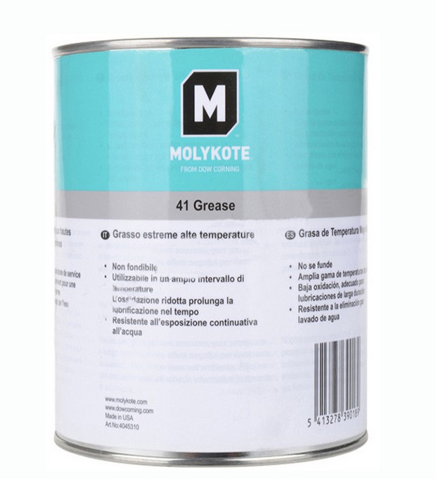 产品描述:摩力克Molykote® 41极高温轴承光滑脂--用炭黑增稠的苯基-甲基有机硅光滑脂,比通常硅脂耐更高温(高达290℃),热稳定性优良。