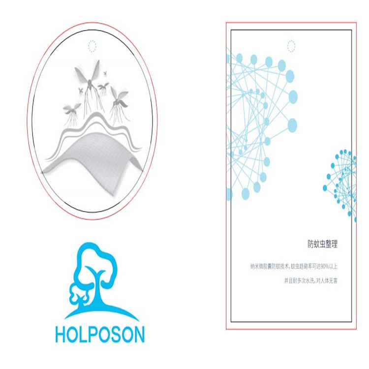 防蚊虫整理剂 HOLPOSON®Spiderman HOLPOSON® Spiderman也叫蜘蛛侠® 是由我司博士团队开发的驱避型防蚊虫整理剂,适用于各种规格的纺织品,如:棉,粘胶,涤纶,尼龙等天然、合成纤维及混纺织物。蜘蛛侠®主要成分为氯菊酯的防蚊整理剂,核心技术:纳米材料包裹氯菊酯制成氯菊酯纳米微胶囊,可以提升氯菊酯的耐久稳定性,也可提升防蚊虫整理剂在纺织品上的耐水洗性能。